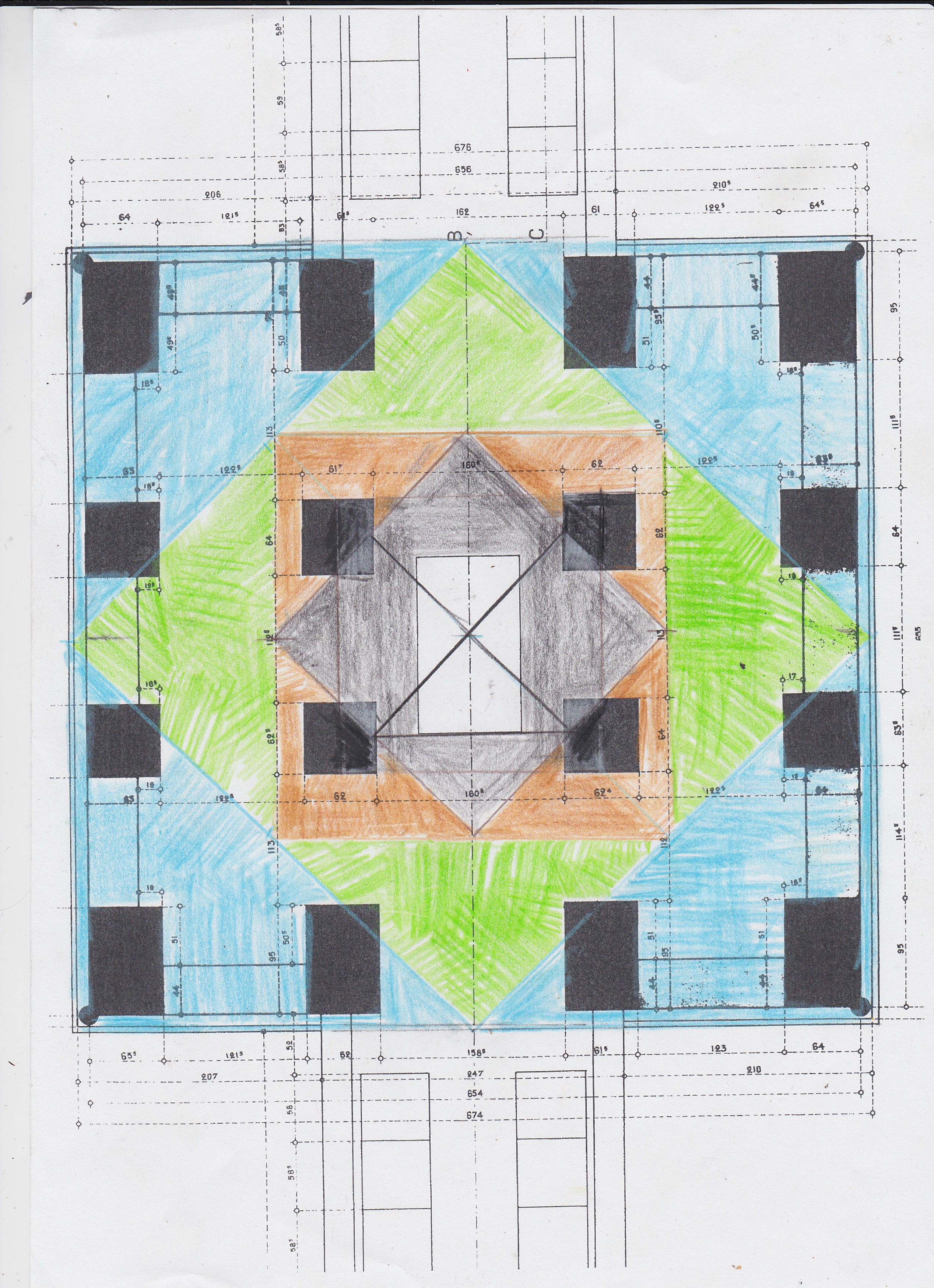 Une petite clarification de l'harmonie entre le carré du socle et les deux escaliers de part et d'autre.