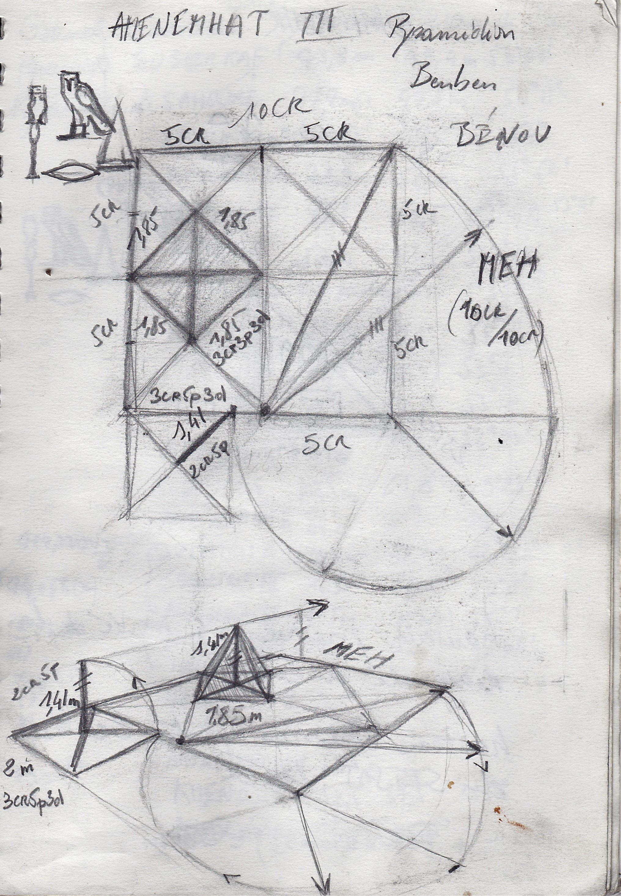Mesure du pyramidion côté base 1.8512, 1/10 du côté Sa ou un hepat de 99 djebâ, donc diagonale 2.618 mètres, 5 meh nessou, et hauteur 1.414 en mètres...( 27 meh nessou, c'est 14.14 mètres)