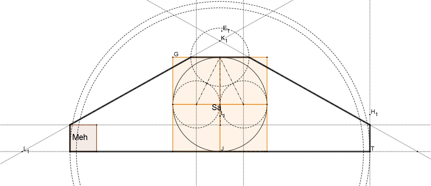 Plate forme en haut de 11.44 mètres, l'exact 18.512 divisé par Phi, le nombre d'or.