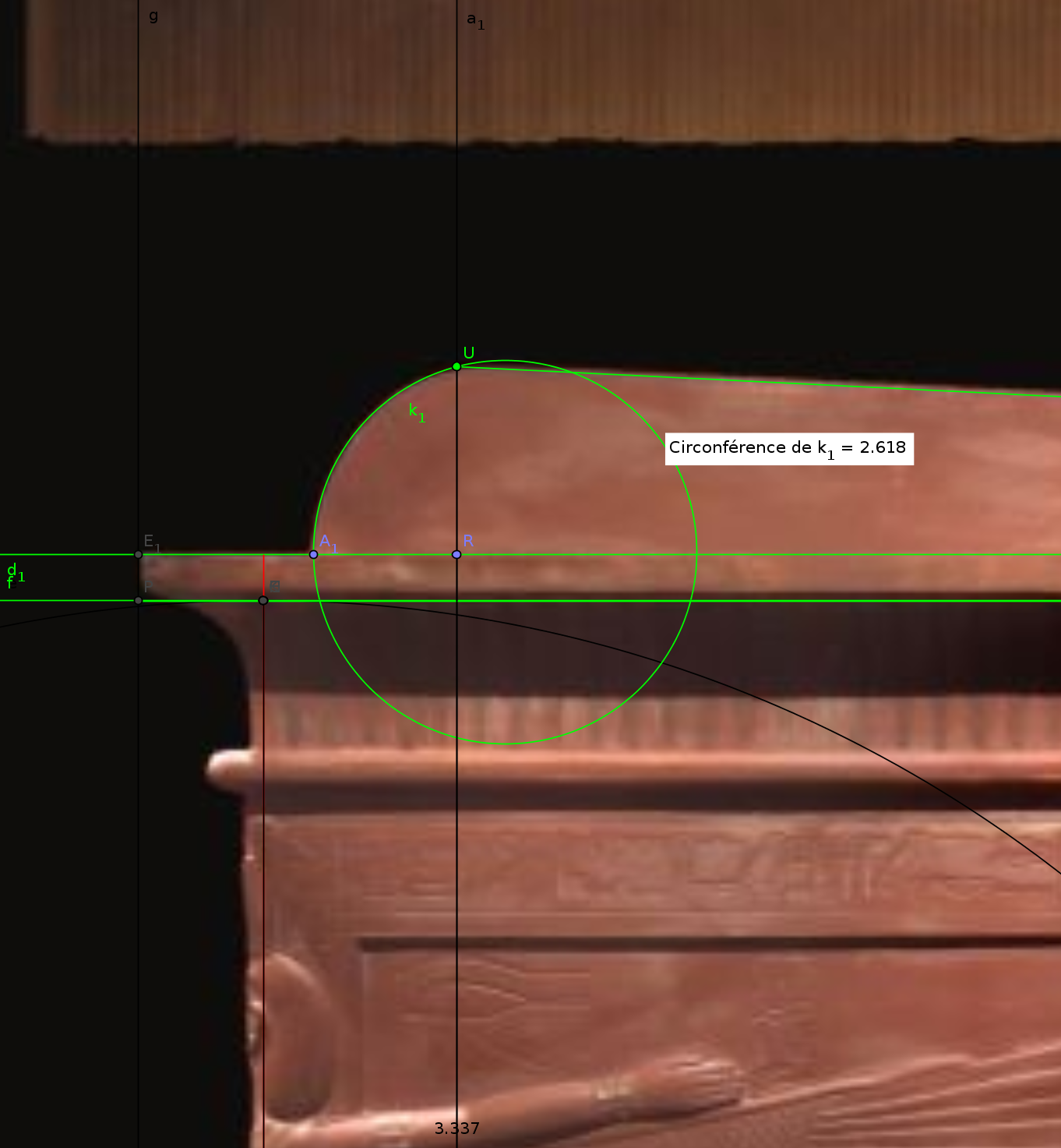 Bien sûr nous continuerons à dire que c'est le hasard, que c'est fait à vu de né, choix empirique de longueur, largeur hauteur, que d'y voir une géométrie harmonique est ridicule, et lu récemment que pour la circonférence du cercle les Egyptiens tout comme les Mésopotamiens utilisaient comme valeur de Pi...3
