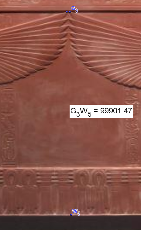 Il ne faut pas se fier aux dimensions que j'ai mis des photographies pour l'élévation, en mettant le dessin de Carter sur géogébra, ce qui permet une grande précision, on arrive à 5 mètres pour la première enveloppe. 4.994 mètres exactement, et 5.54 mètres avec la photo...
