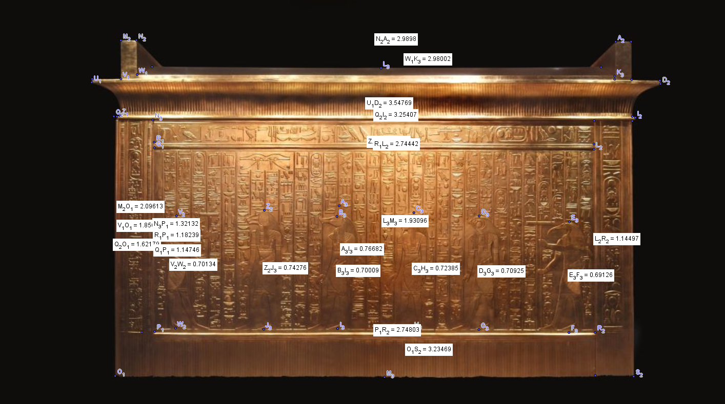 Amusant le 1.909 mètres qui est la hauteur du rectangle contenant les signes...qui je rappelle multiplié par Phi carré donne 5 mètres!