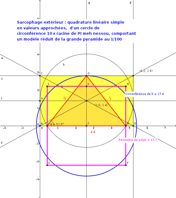 Le rectangle au centre surligné en blanc, sa longueur fait 2.237 m, c'est bien la racine de 5, soit la hauteur d'Isis mis en double carré, la diagonale faisant par conséquence 2.236 mètres !