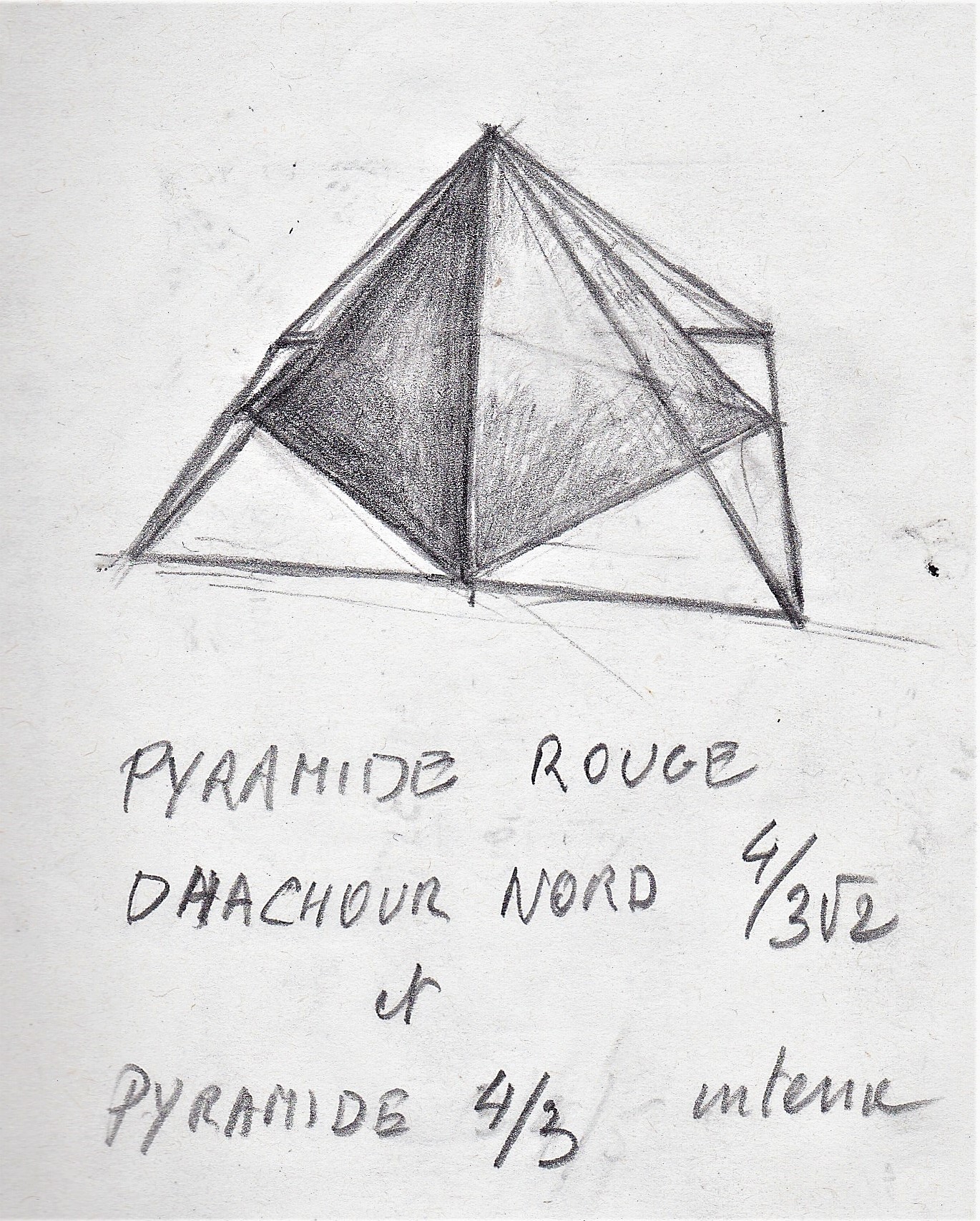 Avez vous remarqué que l'angle aux arêtes est de 4/(3racine de 2), soit 43°19', soit l'angle de pente de la pyramide rouge et