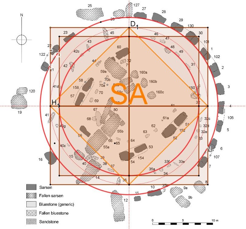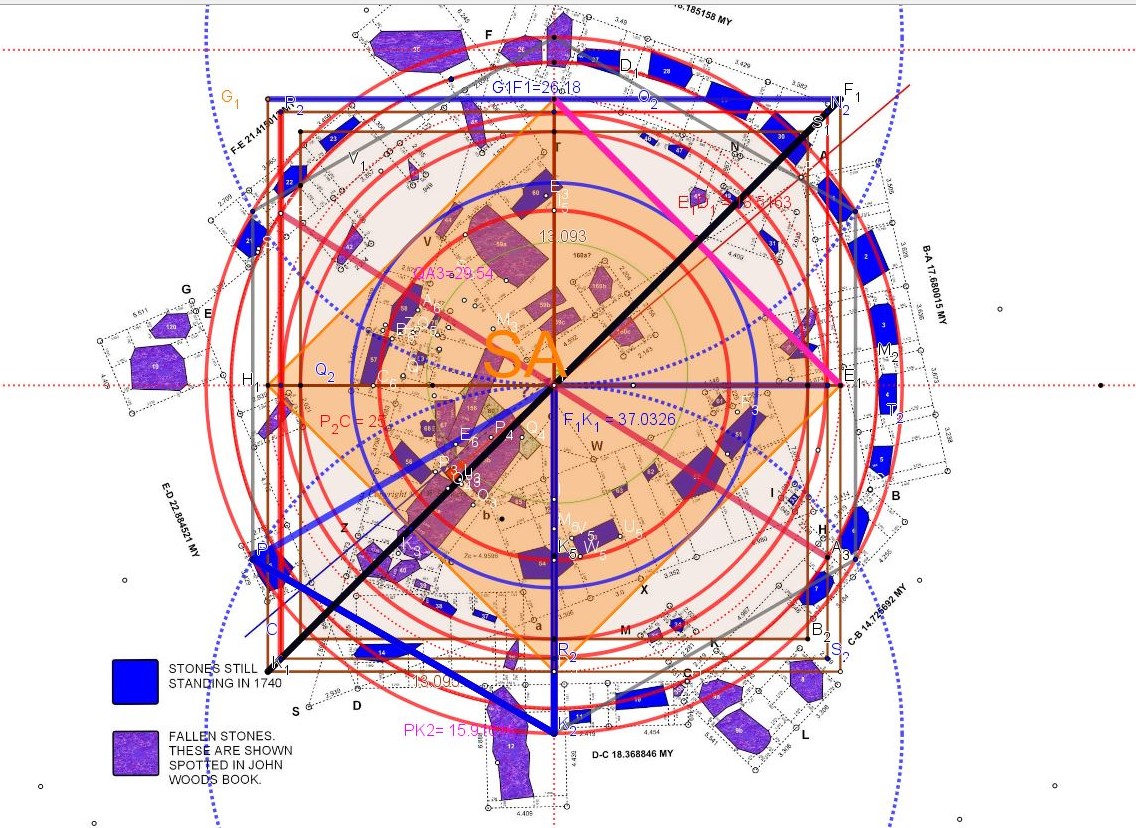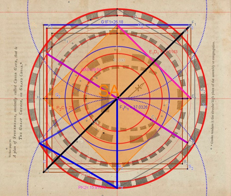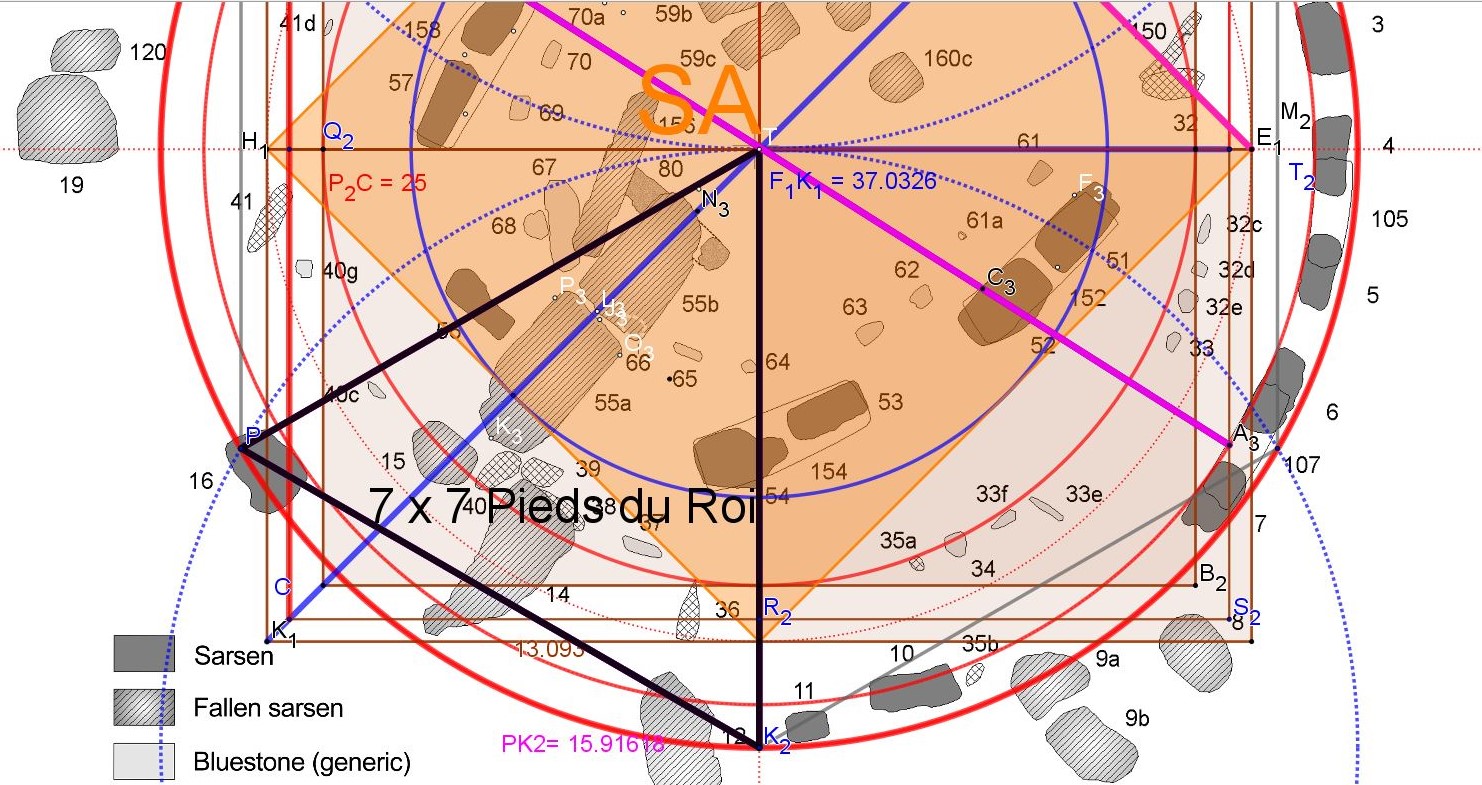 Alexander Thom est bien sympathique, mais penser qu'on va retrouver une constante en ne se fiant qu'à un travail de conception, de création, qui n'utiliserait ni les racines, diagonale du carré, double carré ( Nombre d'or et ses puissances) et triple carré, ni les quadratures périmétriques et surfaciques, donc une composition uniquement arithmétique...!?!?