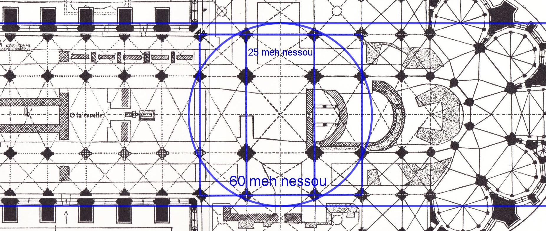 Déjà une découverte, le geste qui fait naitre la largeur de l'édifice est le même que celui opéré à la cathédrale de Chartres.