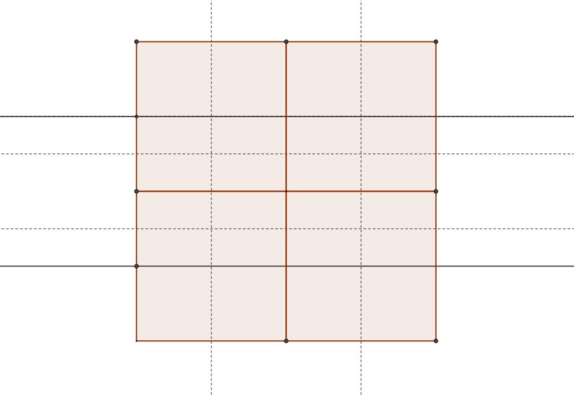 Le centre de ces quatre carrés est aussi le centre de la croisée du transept.