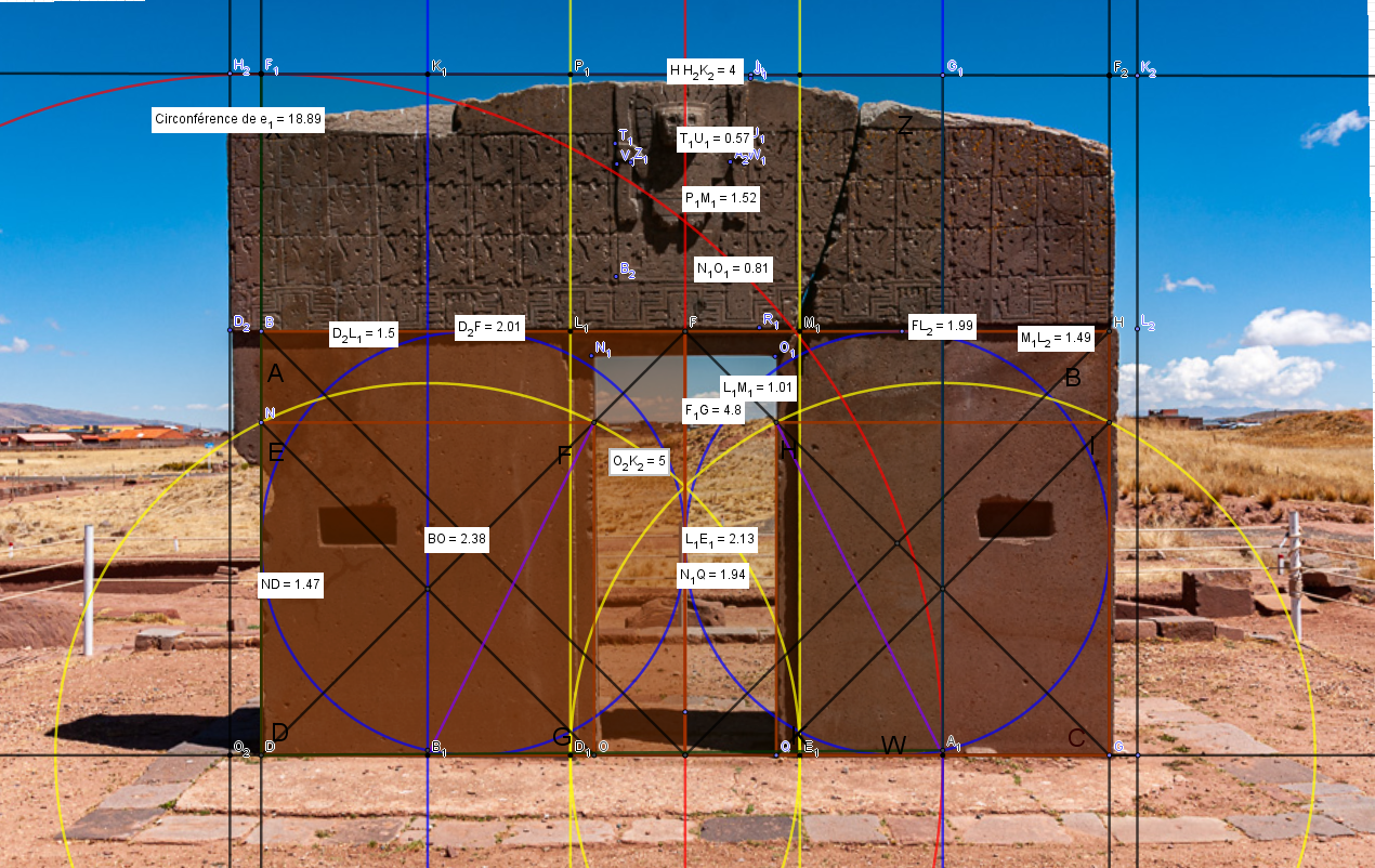 les fenêtres de la porte du Soleil de Tiwanaku sont également hamonieuses en mélangeant meh nessou et mètre.