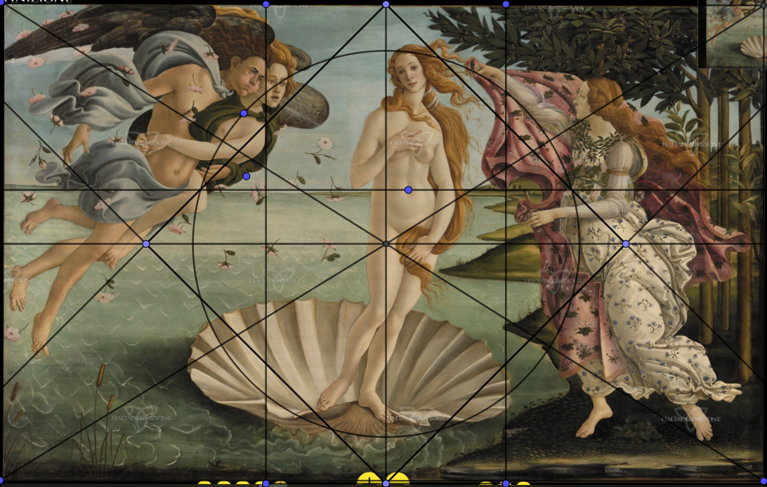 Botticelli montre volontairement les 3 Tables et révèle les outils et les armes de la beauté: la géométrie.