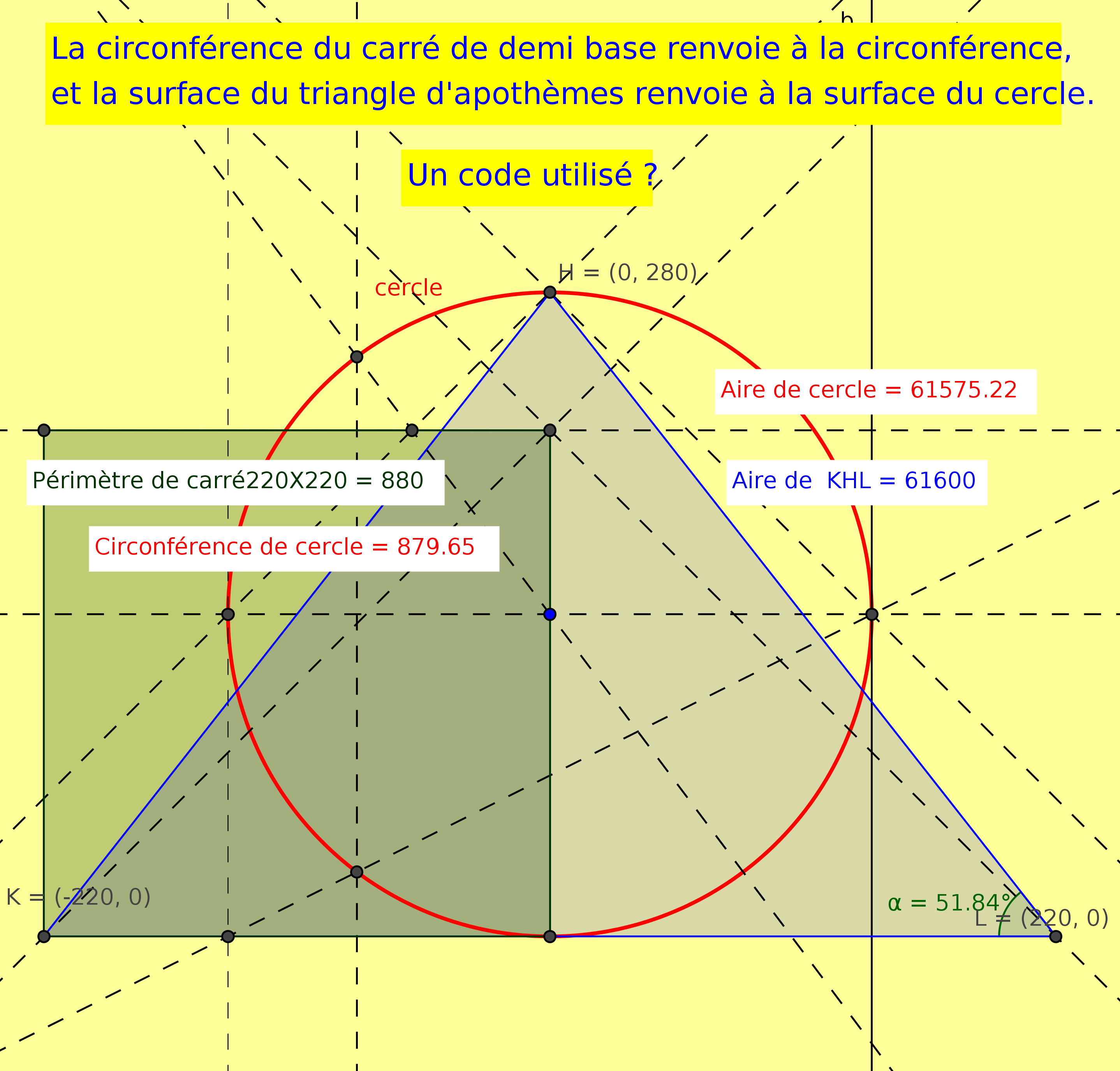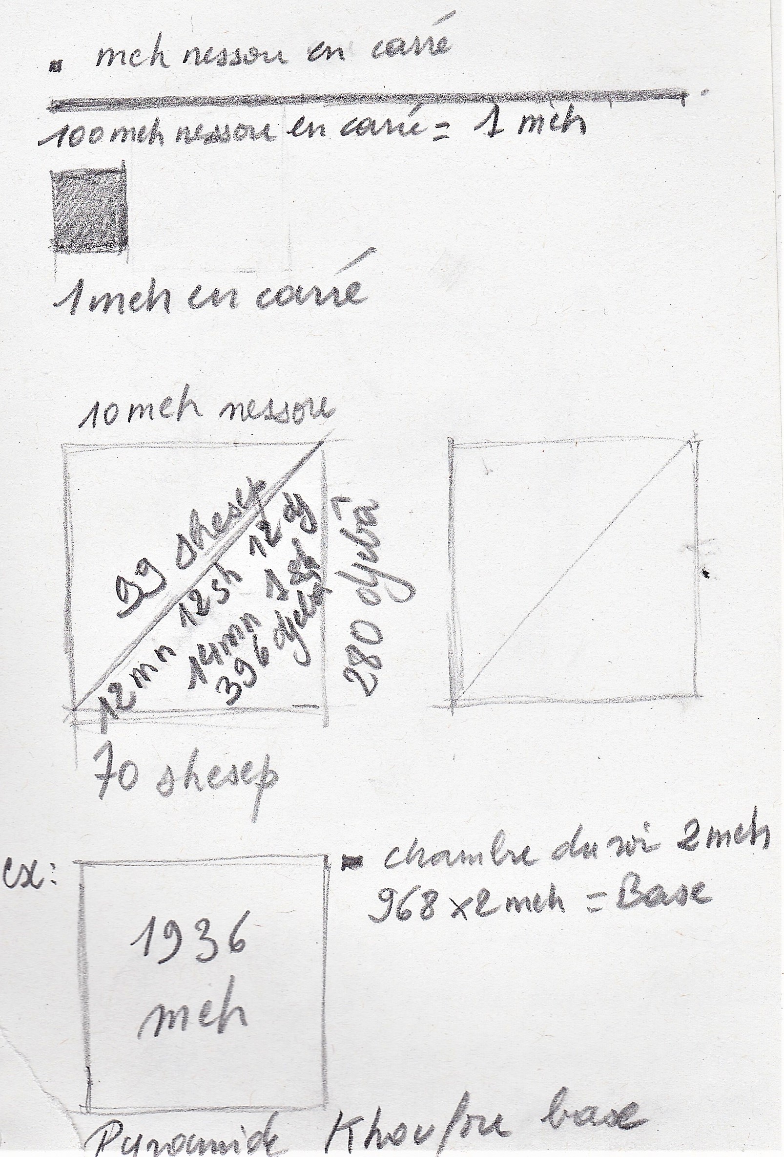 La base de la pyramide de Khoufou a une surface de 1936 Meh, soit un carré de 44 côtés de Meh.