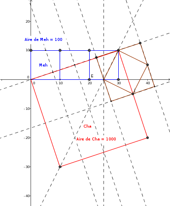 pour obtenir un carré sa il faut passer par la racine de 5 sur 2 le côté d'un carré cha, pour le cha, passer par la racine de 10 le côté d'un carré meh( soit une diagonale d'un double carré moitié de cha et une diagonale de trois carrés meh)