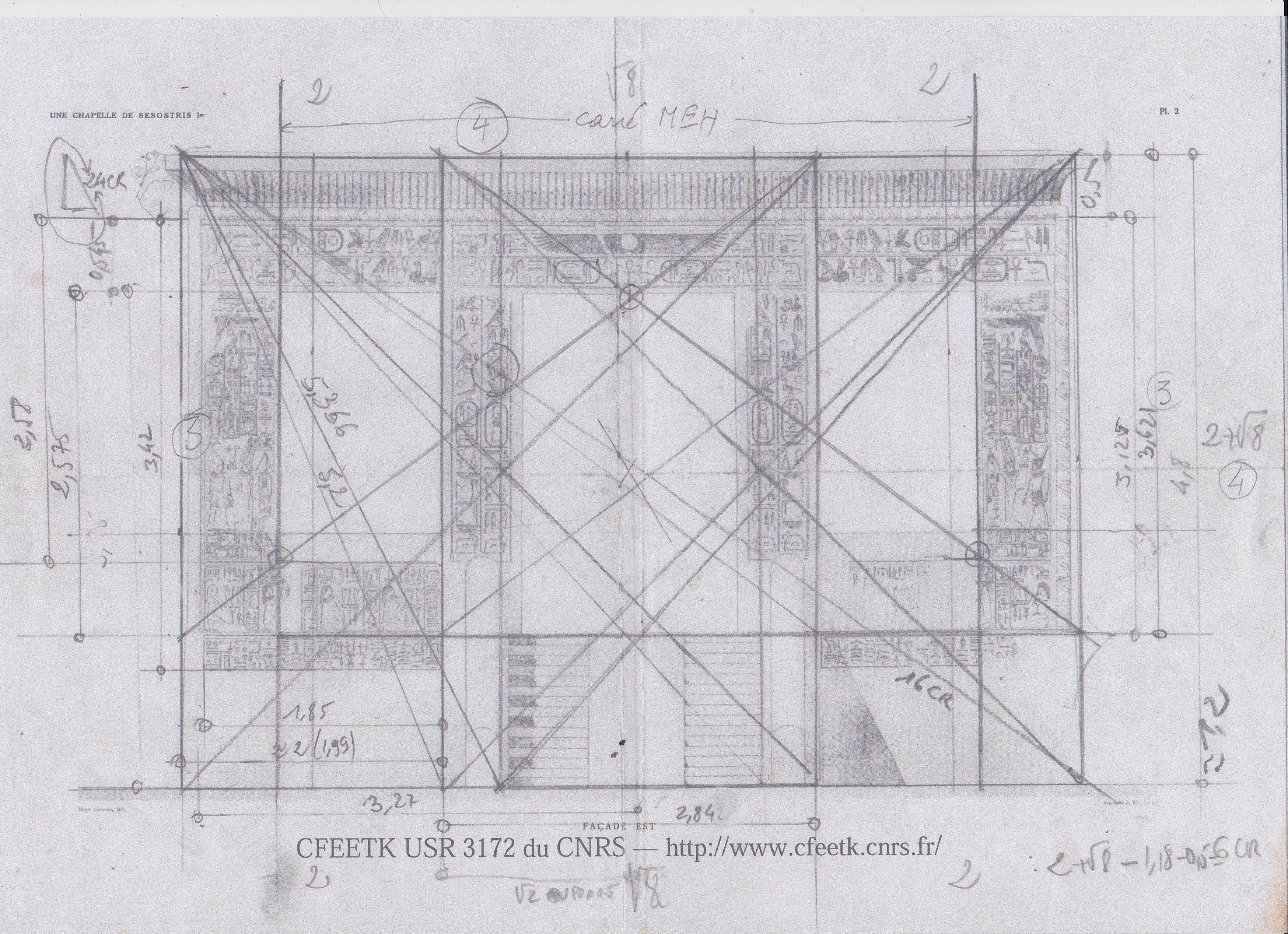 Ce qui rejoint les dalles du toit puisqu'elles forment un carré de 7m07 pour une diagonale de 10m, soit 5 Aawy...5 fois le module jaune, mais aussi 5 fois les deux portes battantes de la petite Chapelle de Sésostris, portes qui parcourent ensemble un arc de 6 meh nessou