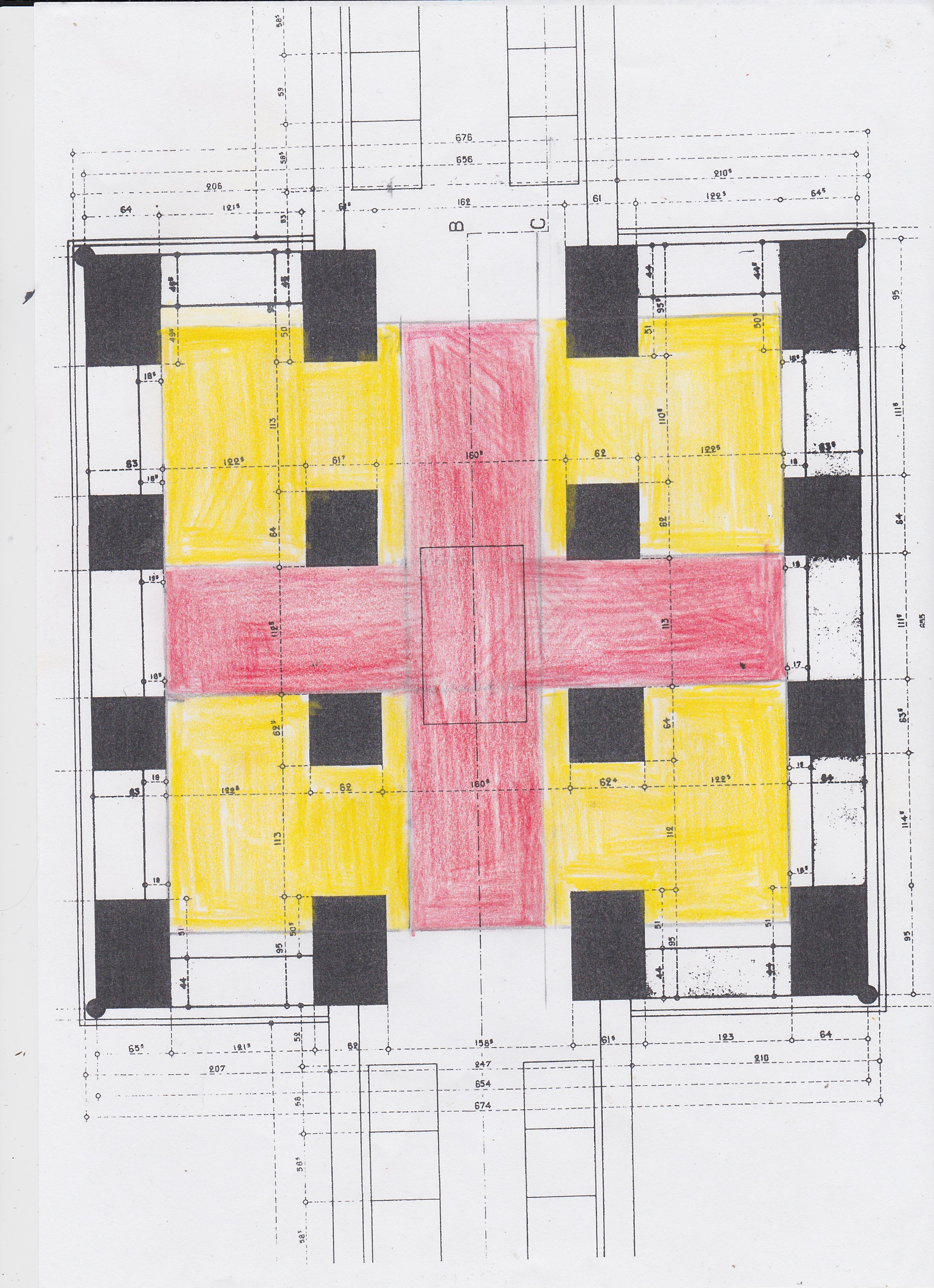 Une petite clarification de l'harmonie entre le carré du socle et les deux escaliers de part et d'autre.