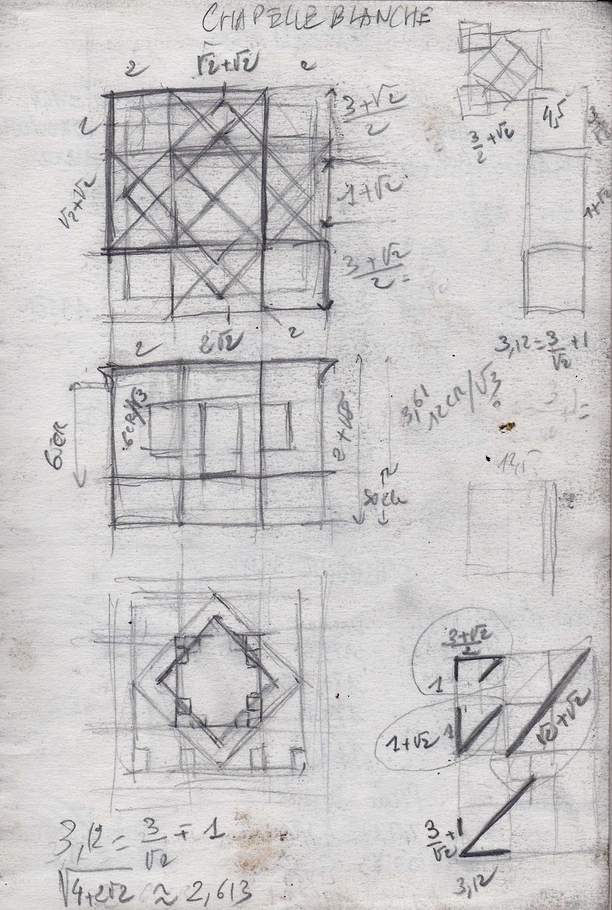 Rapport 6/5 entre la longueur totale et la diagonale du toit.