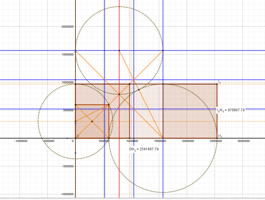 Donc un rectangle 4/9 soit 13.70 m( mesure officielle, aussi sur le plan d'Orlandos et aussi par géogébra sur ce remarquable dessin) et une largeur de 30. 85 à 88 m selon les sources.