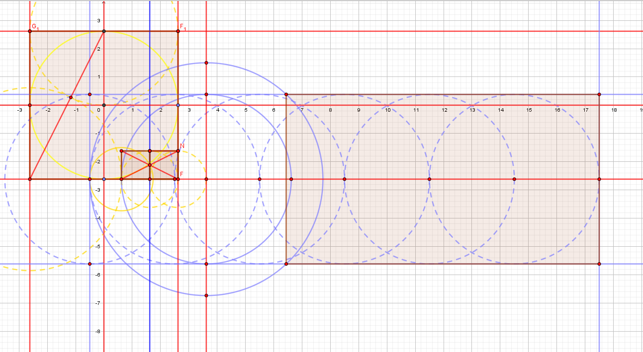 Rappelons nous de la Chapelle Blanche, son élévation partait du carré Jaune de 2 mètres, 10 empans( rapport 1 et phi carré, 2 m et 5.236m du carré Meh) et sa diagonale 2.828 m, 2+2.828+2=6.828 m donnant la base du socle supportant la chapelle Blanche.
