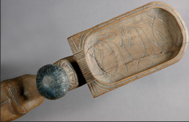 Sculptée en bois de caroubier, cette cuillÚre à fard mesure 34 X 7 longueurs de graines de caroubier.