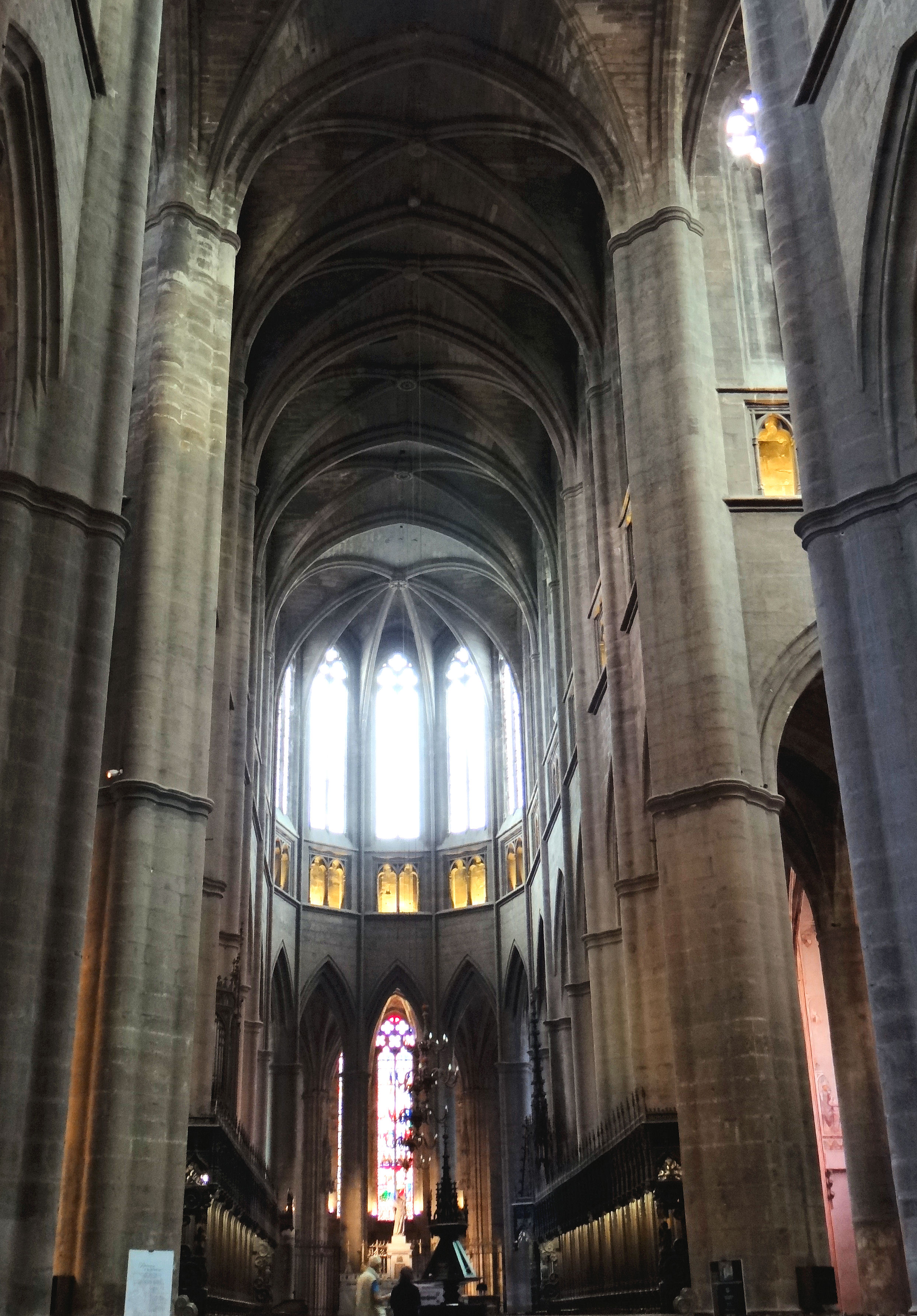 Tout de suite je fus sidéré par l'effet extraordinaire que procure les dernières travées du Choeur qui s'ouvre vers le Transept en entonnoir, tel un pavillon acoustique, puisque les travées suivantes se rétrécissent jusqu'à l'autel.