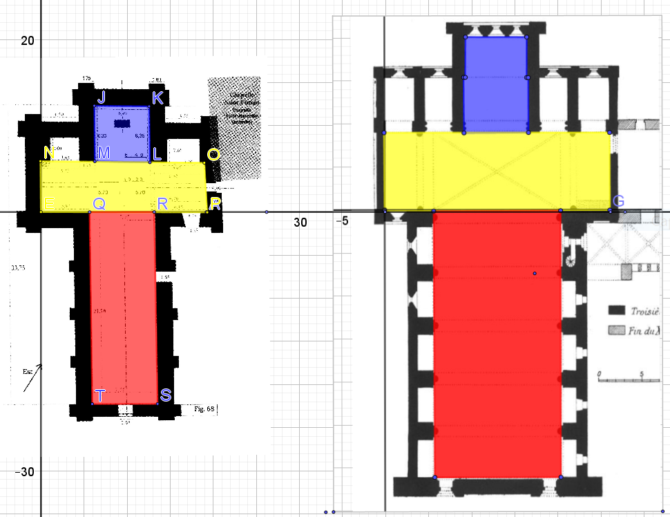 Le carré surface égal à la somme de la surface du Choeur plus le transept plus la Nef de Boscodon est un simple Clima Romain.