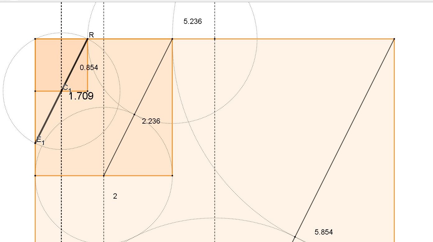 D'abord la hauteur du sol jusqu'au haut de la voute est un étrange racine de 5 en mètres...2.236 mètres très proches de 2.241 mètres donnés au laser, 5 millimètres près...