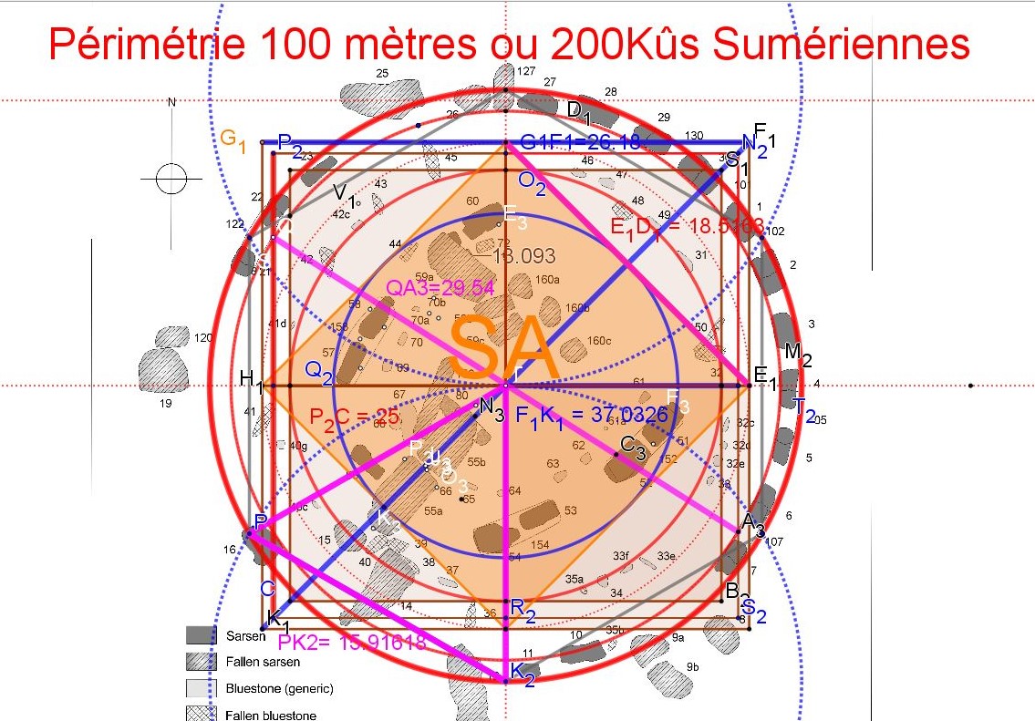 Alexander Thom est bien sympathique, mais penser qu'on va retrouver une constante en ne se fiant qu'à un travail de conception, de création, qui n'utiliserait ni les racines, diagonale du carré, double carré ( Nombre d'or et ses puissances) et triple carré, ni les quadratures périmétriques et surfaciques, donc une composition uniquement arithmétique...!?!?