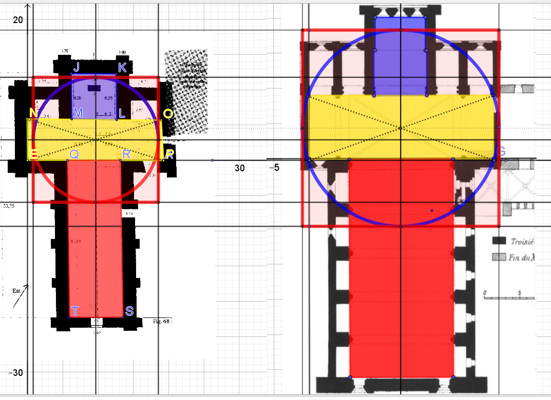 Le carré surface égal à la somme de la surface du Choeur plus le transept plus la Nef de Boscodon est un simple Clima Romain.