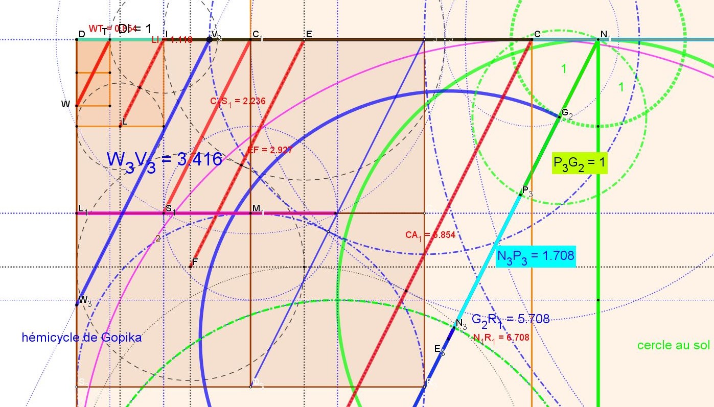 Le demi cercle bleu est l'hémicycle au sol de Gopika, soit un diamètre de 5.708 et 2.854 mètres ou Pas ( ou Giri sumériens ou Sépu Akkadiens) de rayon !