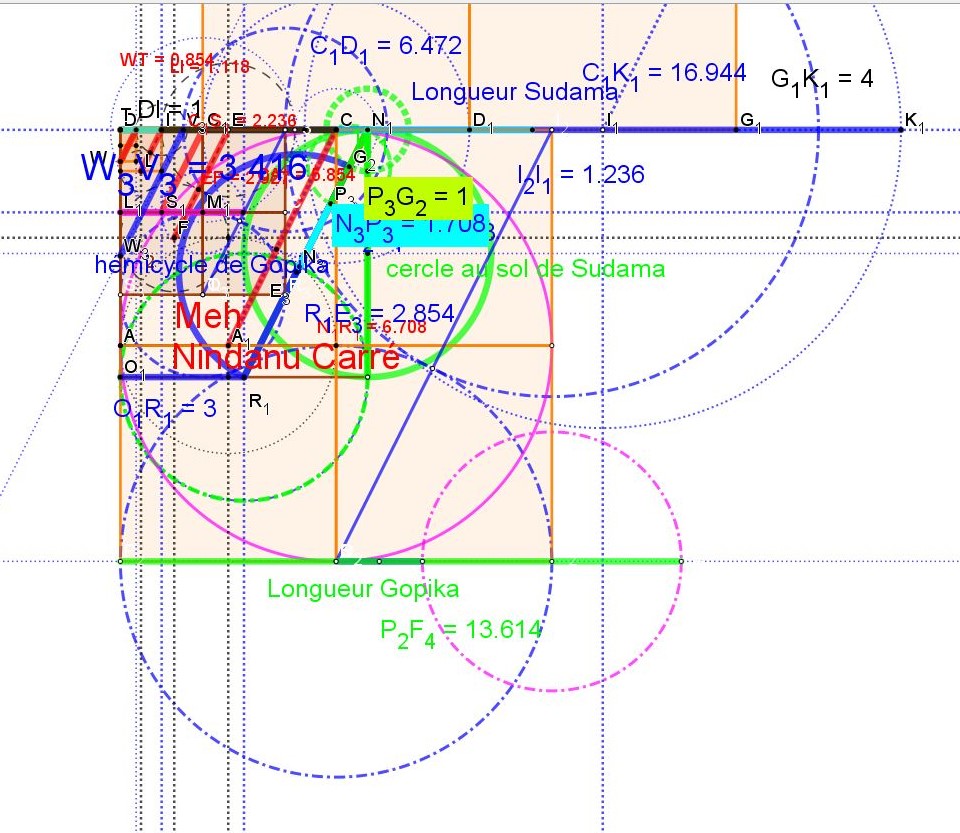 NB: Le segment J1M1 faii ici sur le mandala du temple 5.71 mètres, tout comme les diamètres de Gopika.