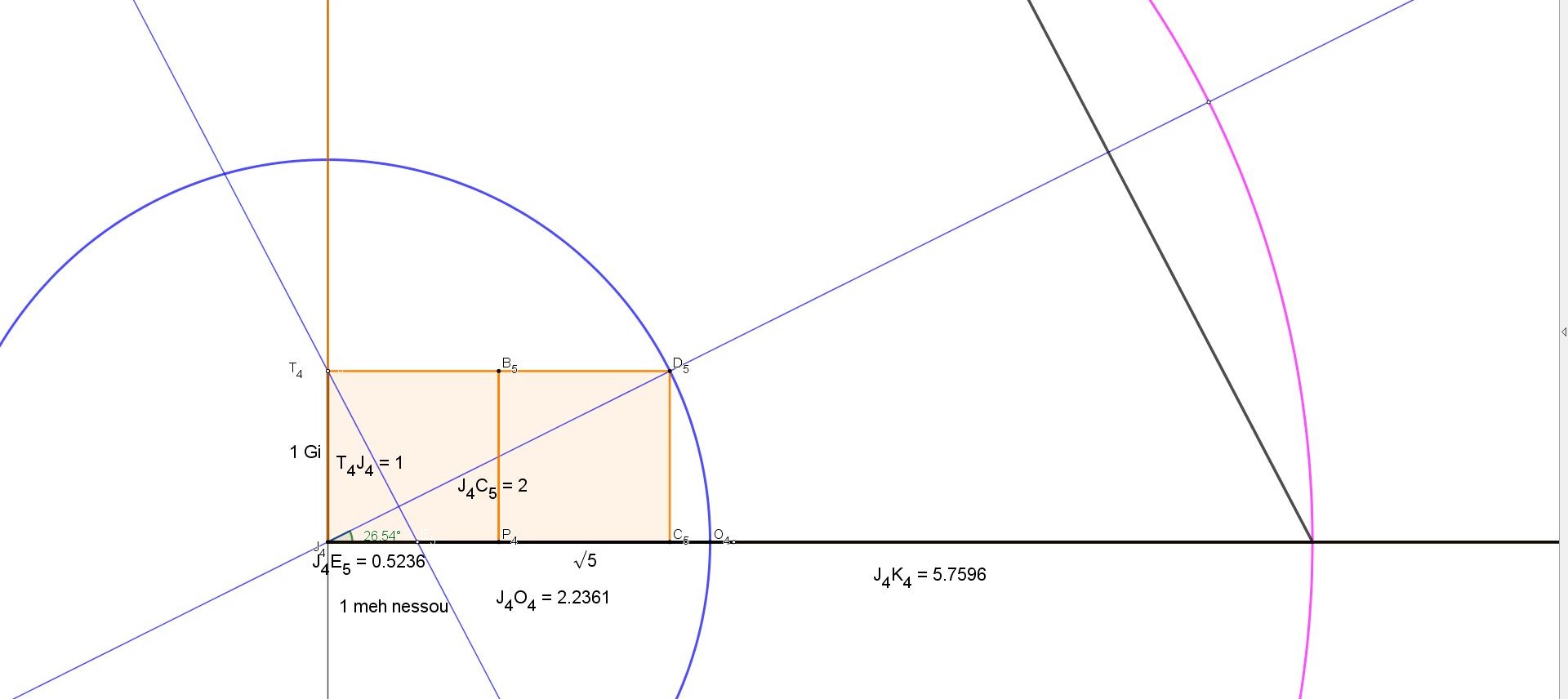 Par contre comme tout ici est quadrature et qu'on a de plus l'utilisation de la racine de 5, on risque de tomber sur ce 0.854 mètres !