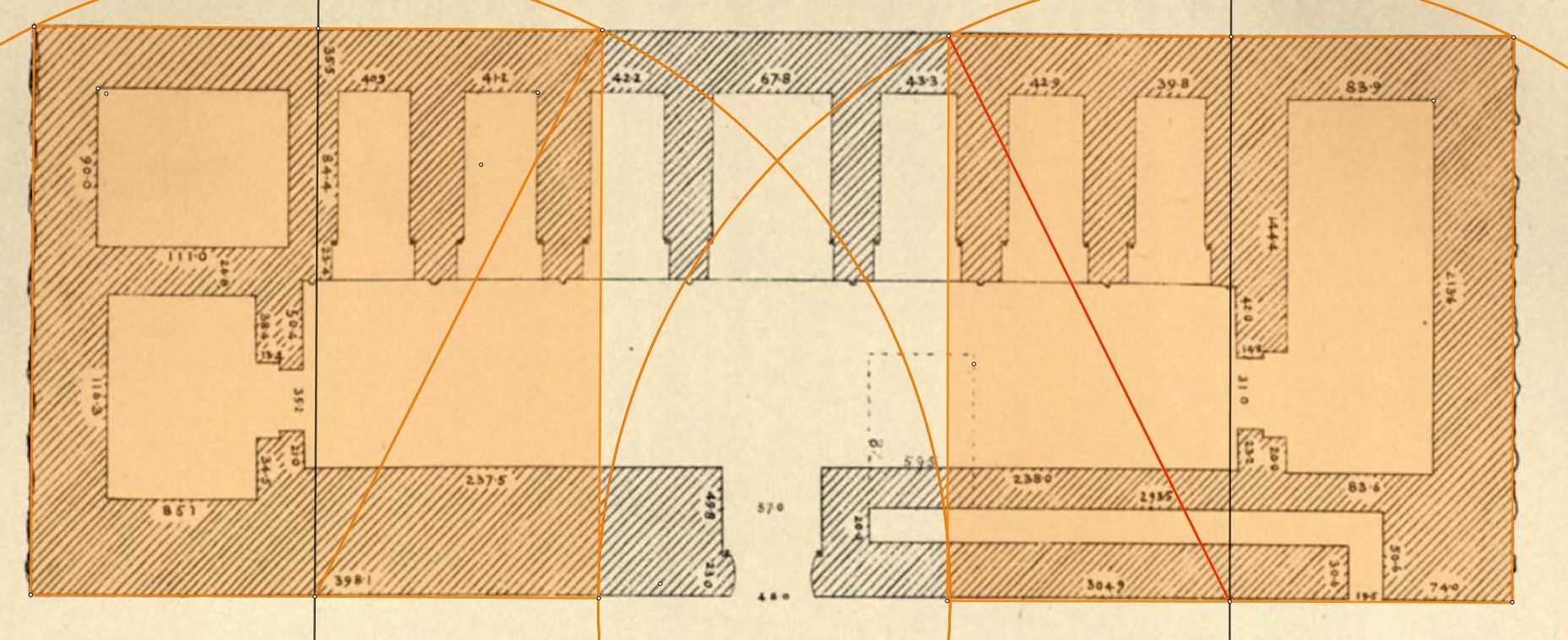 On se concentre sur le rectangle du temple que l'on sait maintenant ĂŞtre sorti de la matrice Heseb.