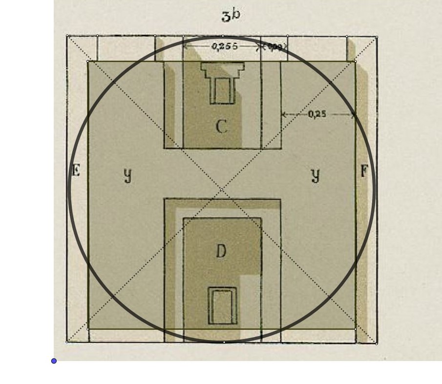 Le voici ! Et nous voyons qu'il faut une pierre oblongue en dessous pour être au niveau de l'entrée de la porte sur la droite du dessin.