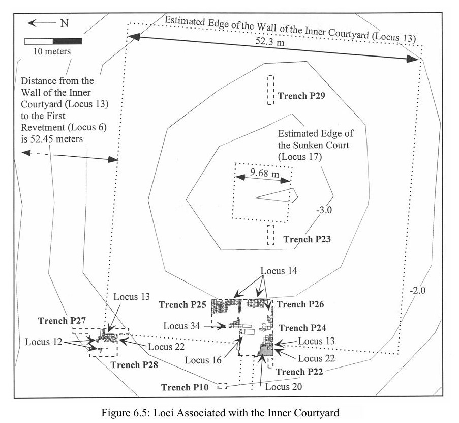 Ici dans cette reconstitution brillante, les bloc H ne sont pas indépendants mais font parties des grands monolithes, dans le bâtiment Nord et celui au Sud, plus petits que celui au centre.