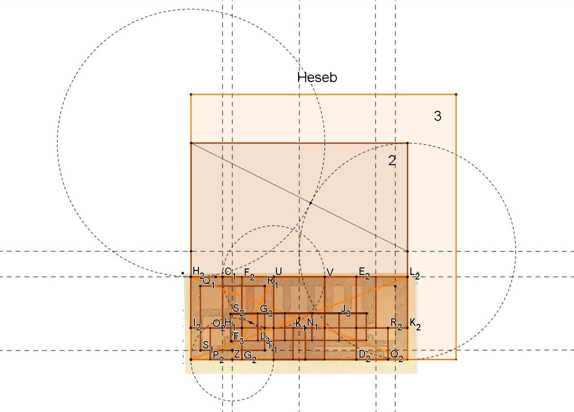 On se concentre sur le rectangle du temple que l'on sait maintenant ĂŞtre sorti de la matrice Heseb.