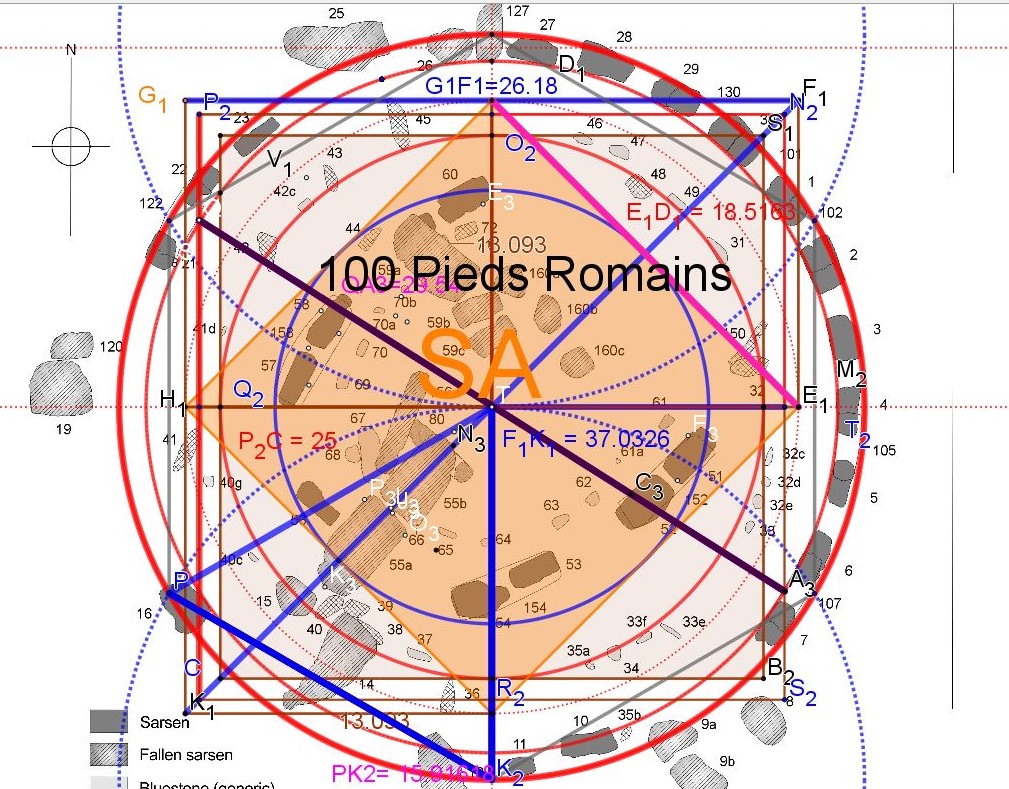 Alexander Thom est bien sympathique, mais penser qu'on va retrouver une constante en ne se fiant qu'à un travail de conception, de création, qui n'utiliserait ni les racines, diagonale du carré, double carré ( Nombre d'or et ses puissances) et triple carré, ni les quadratures périmétriques et surfaciques, donc une composition uniquement arithmétique...!?!?