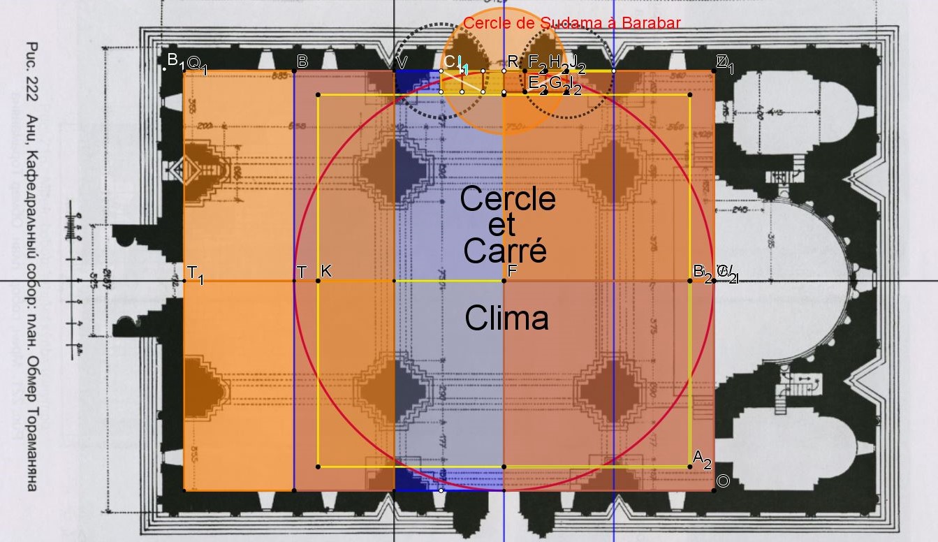 Ce grand cercle d' 1 Clima surface touche 3 côtés de ce rectangle et son centre détermine le centre de la croisée du transept