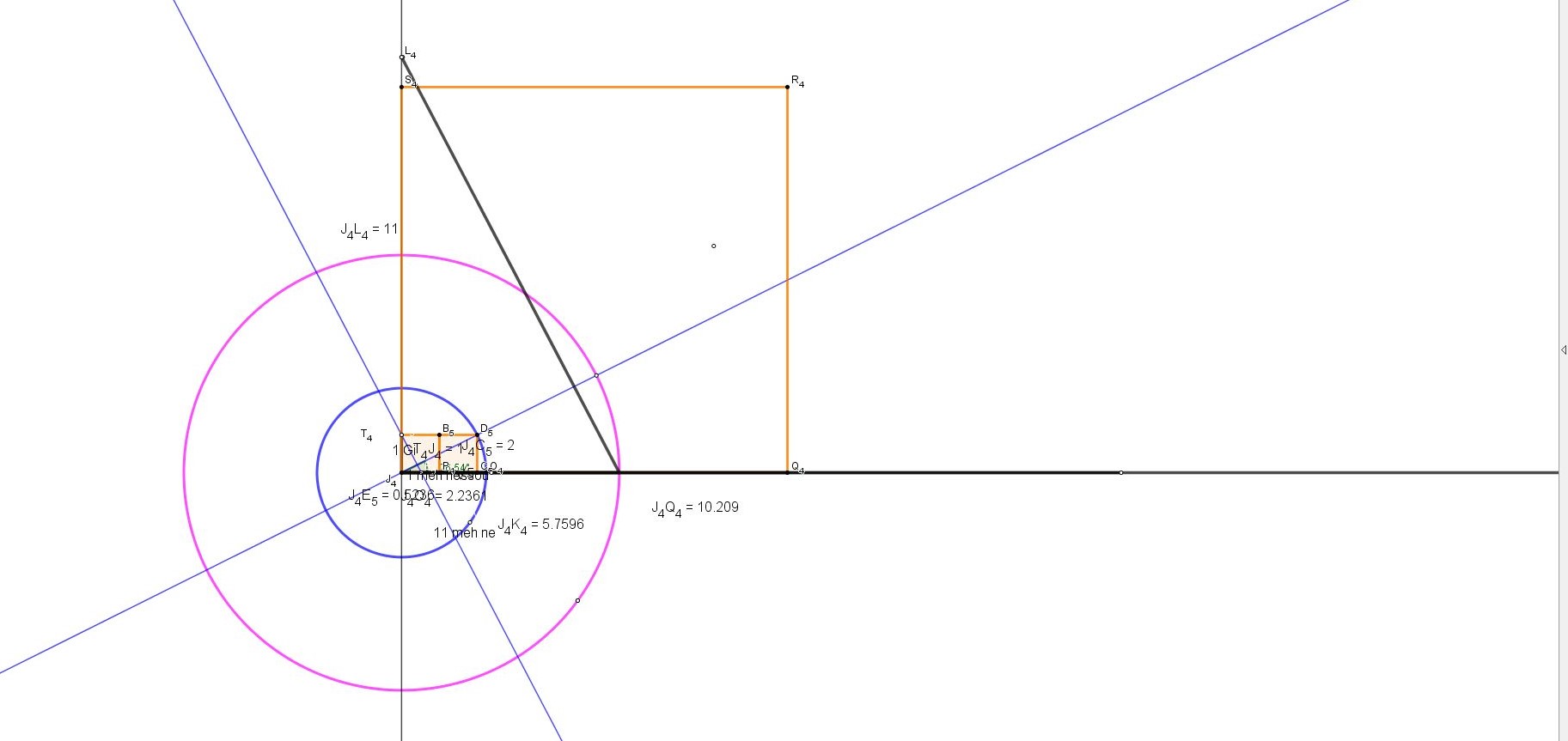 Ce triangle rectangle magique grâce à notre vénérable Thalès, mais aussi à Sudama, car nous y avions trouvé les 11 Giri( mètres) et les 11 meh nessou, triangle rectangle semblable.