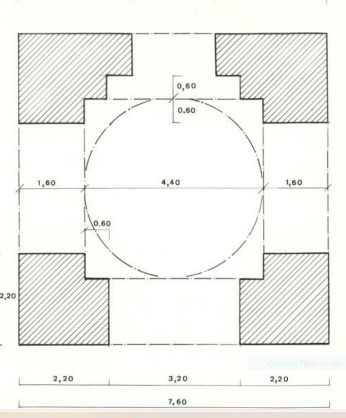 Nous commencerons par le Châhâr Tâq de War Pil, puisque le carré qu'il forme est de 7.40 mètres, que sa surface alors est l'exacte surface du plan au sol de la chambre du roi de la Grande Pyramide de Khoufou, table double carré et que le Châhâr Tâq de War Pil en est donc la table carrée.de même surface.