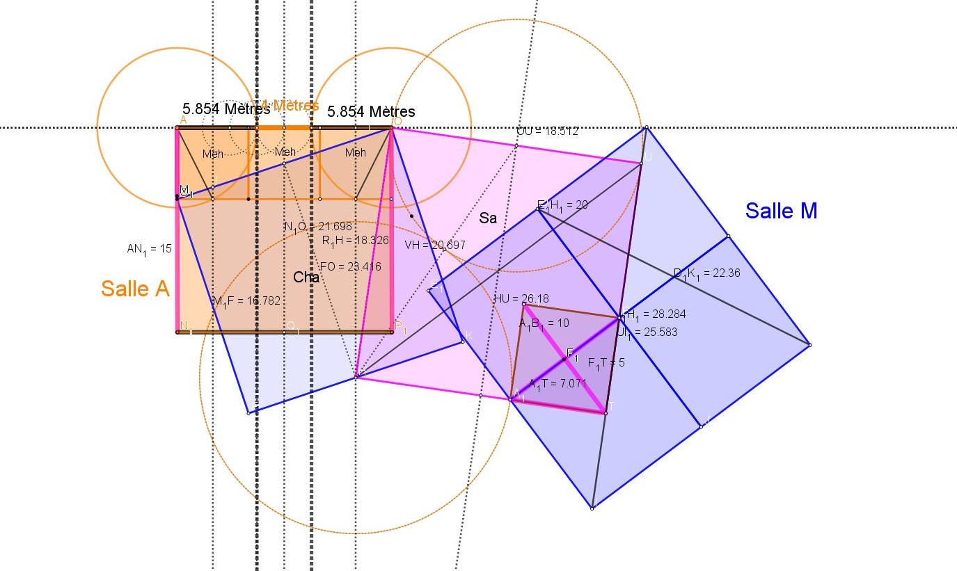 Et le carré du Chahar Taq fait bien la même surface, 2 Meh que le double carré, soit un carré de 7.40 mètres de côté !