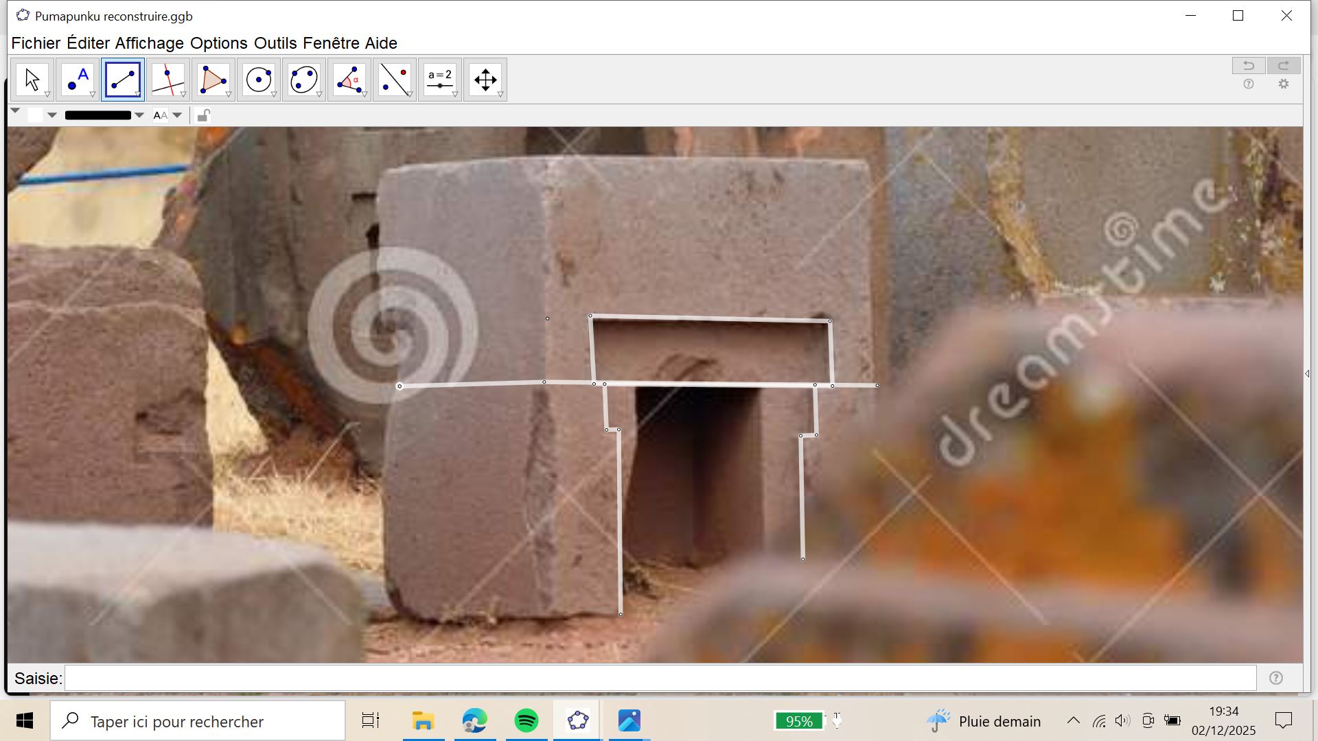 Cette question ne semble pas être intégrée dans le travail de l'IA, si la video ne s'est pas prise les pieds dans le tapis et que c'est bien un dessin de l'IA reconstituant l'édifice en pierre, intégré dans l'ensemble du site de Pumapunku.