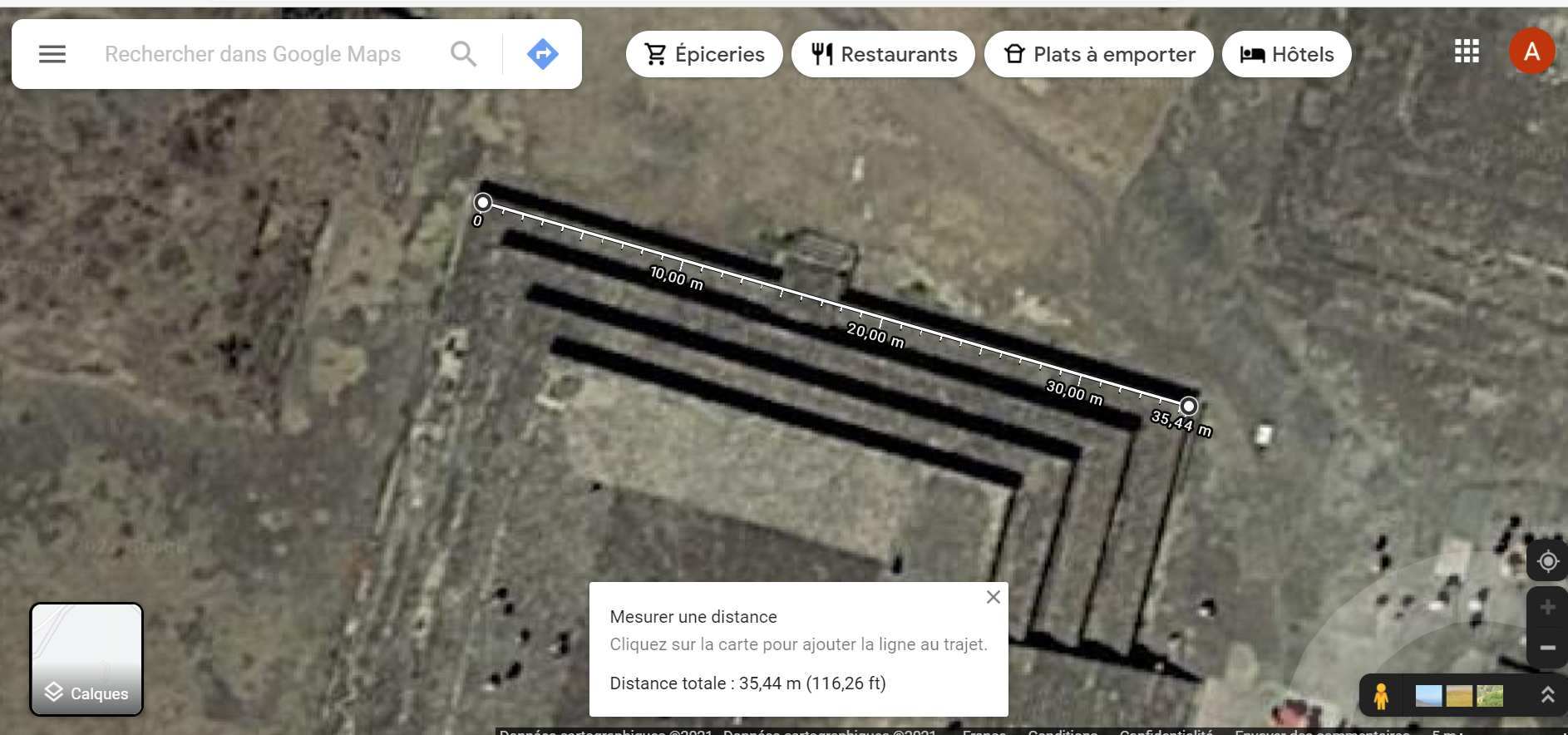 Avec google map et ces deux plans, on peut raisonnablement s'approcher des mesures réelles
