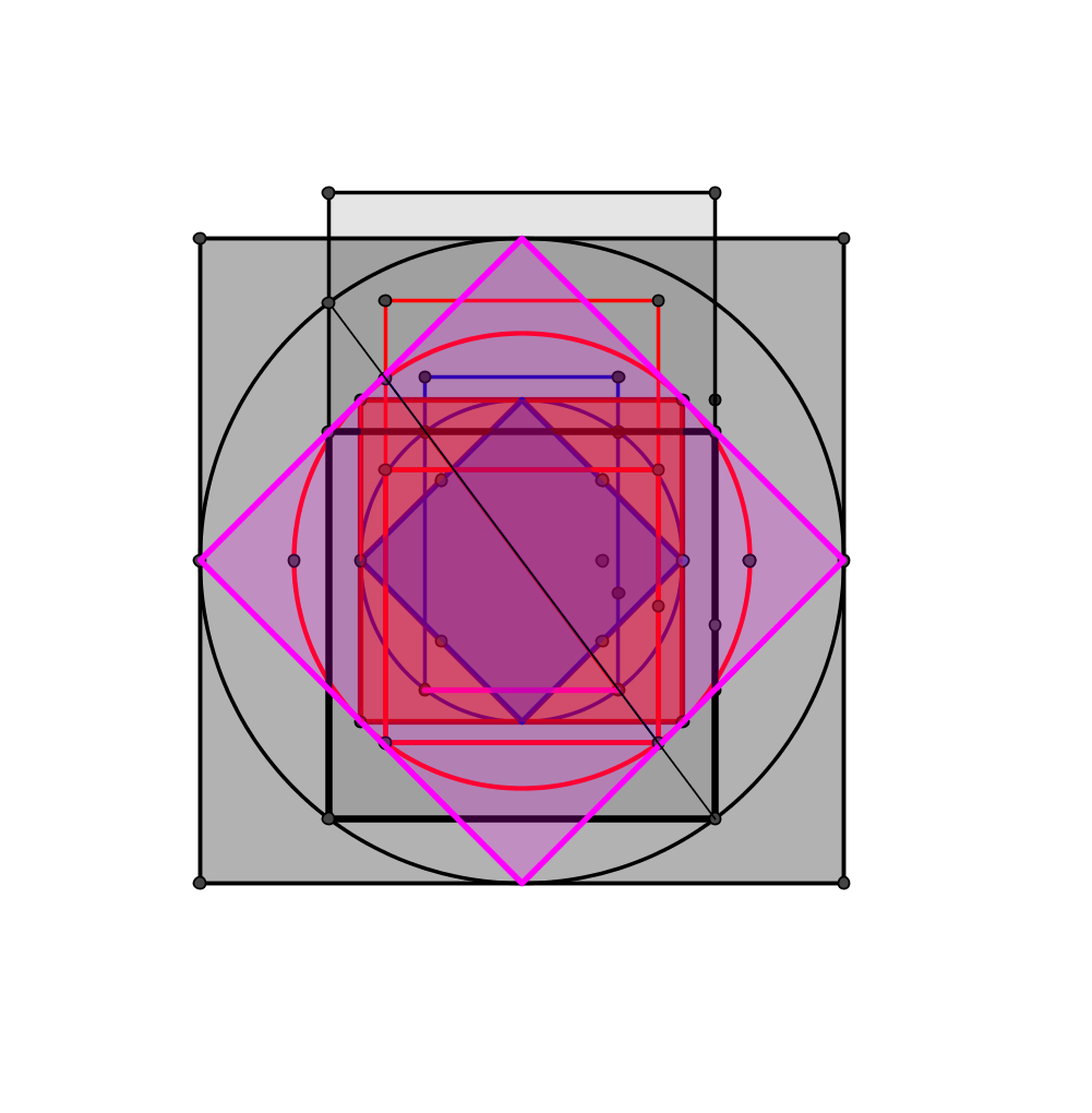 Sur la photo, dont on ne connaît hélas pas les dimensions et apparaît décentrée, on peut constater que les cercles ne semblent pas correspondre aux carrés sa, cercles englobant et dérivés, mais que la structure part bien d'un carré et d'un rectangle indiquant la circonférence du cercle dans lequel s'inscrit ce carré, le coin supérieur de ce rectangle allant générer ensuite un nouveau cercle inscrit, etc ...