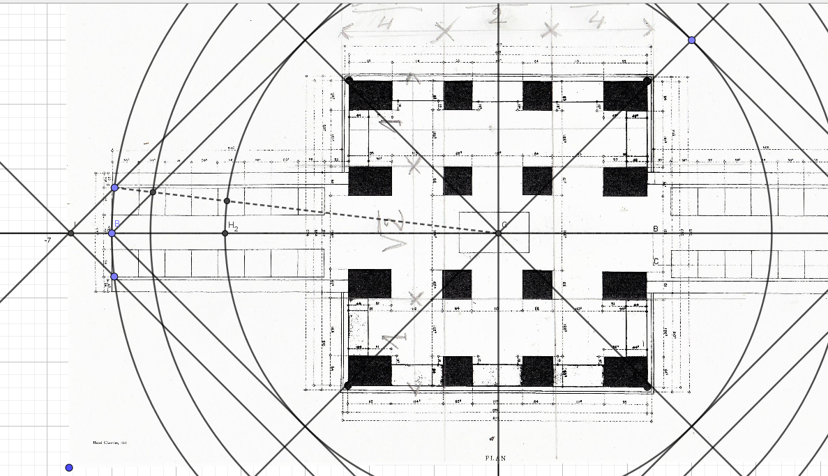 Une succession de cercles et carrés périmétriques et surfaciques, inscrits et exinscrits, construit l'ensemble de la Chapelle et ses constituants.