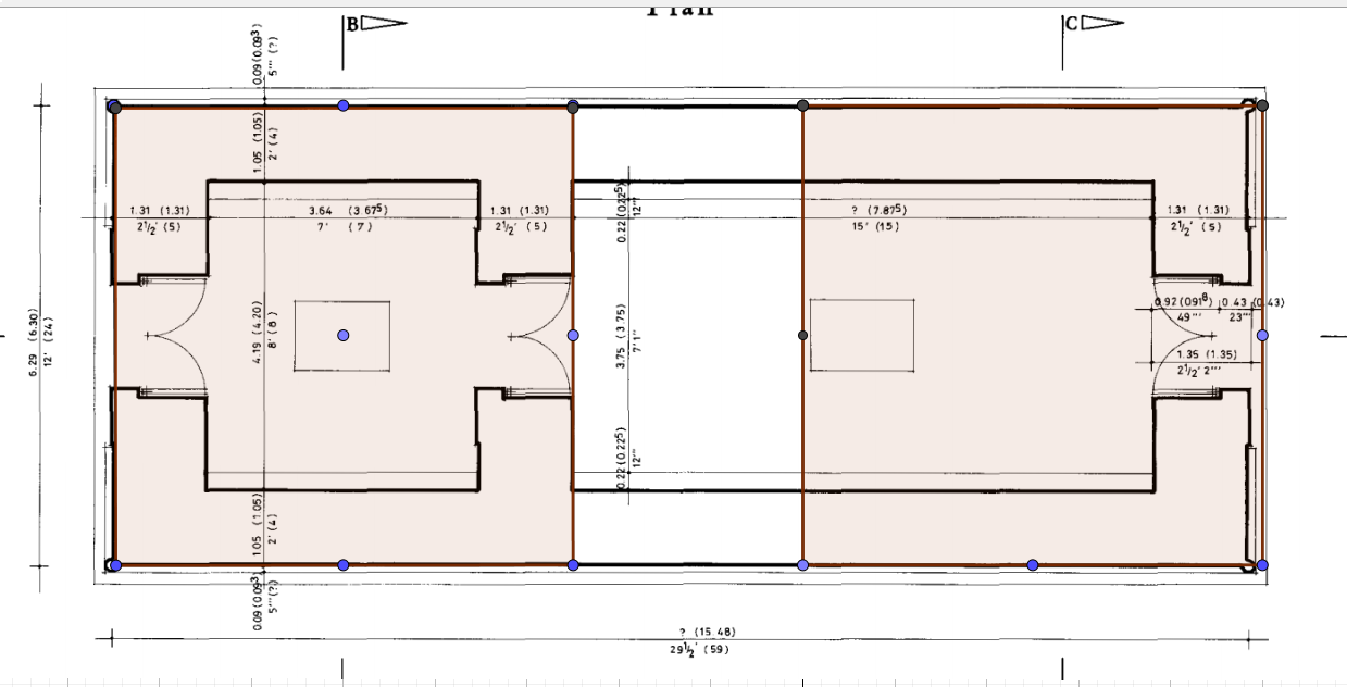 Malheureusement, comme nous le voyons sur cette élévation la Chapelle a été reconstruite en ayant choisis parmi les trois possibilités viables de 29, 29.5, 30 meh nessou, le 29.5.