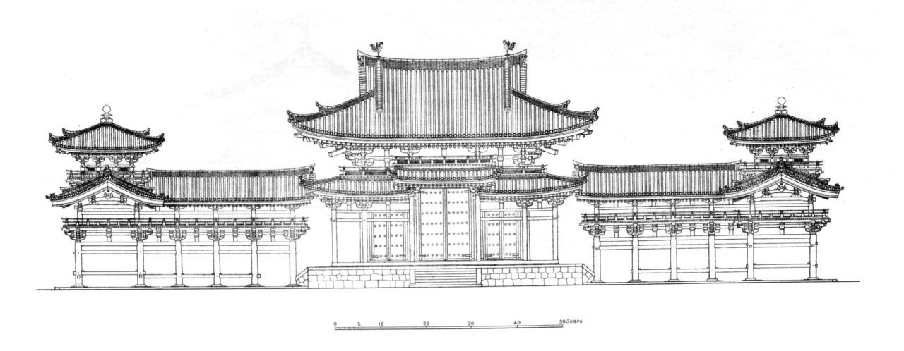 l'espace totale avec le socle, 168.67 Shaku est la largeur totale et 132.527 Shaku la longueur, leur rapport est de 1.2727217 qui peut ĂŞtre un 4/pi ou un racine de Phi !