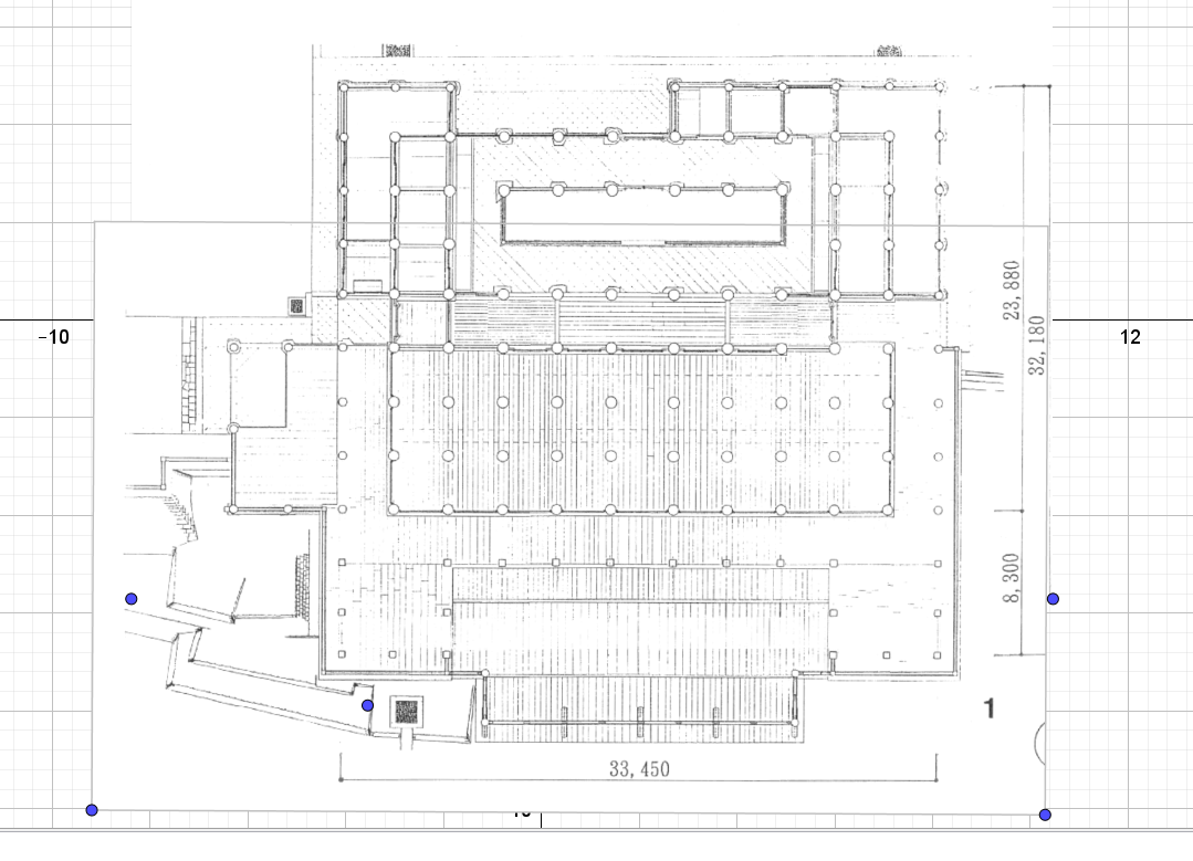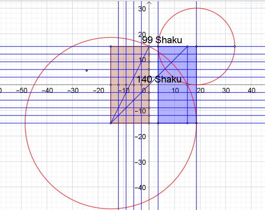 Ce qui donnent une largeur de 15 mètres, mais une longueur proche de 29.5 mètres...Y aurait-il des Shaku en largeur et des Chi Tang Chinois en longueur ?