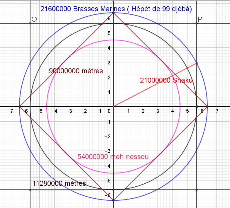 N'oublions pas le cercle rose intérieur au carré de 9000000 mètres puisqu'il a une circonférence de 54000000 meh nessou!....