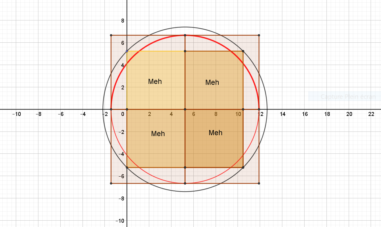 La carré obtenu est ici de 1574 mètres carrés... C'est 10 Hectos Grecs !