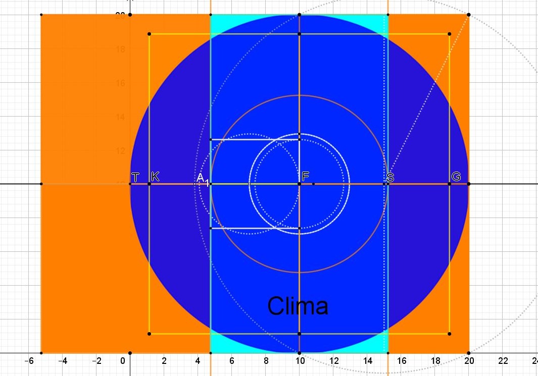Ce grand cercle d' 1 Clima surface touche 3 côtés de ce rectangle et son centre détermine le centre de la croisée du transept