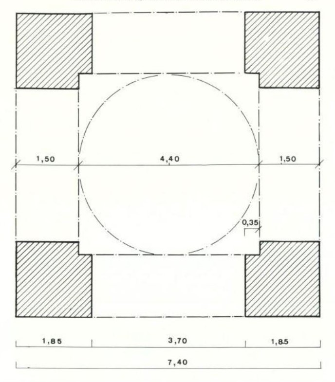 D'ailleurs si nous prenons un carré de l'ouverture de ce Chahar Taq de 3 meh nessou de côté, le cercle de même périmétrie fait bien 2 mètres de diamètre.