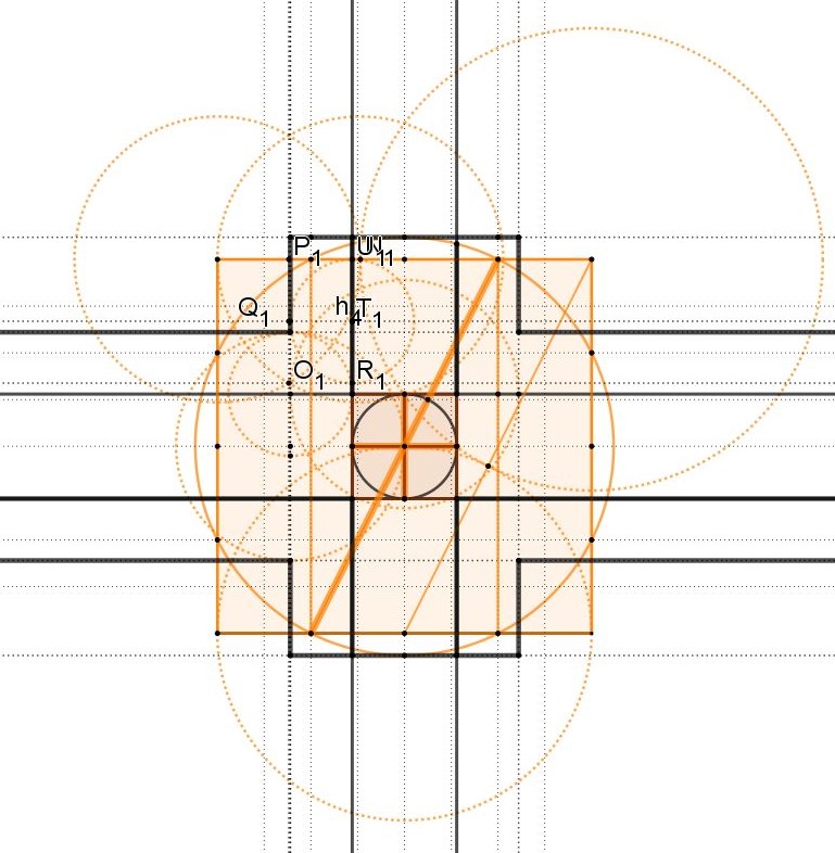 Comme fait précédemment il nous faut le carré du transept qui est le quart de la diagonale du double carré intérieur.